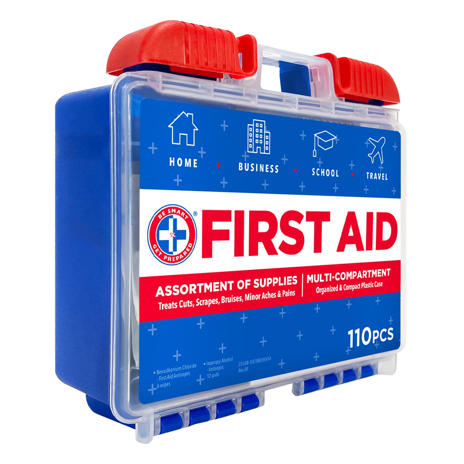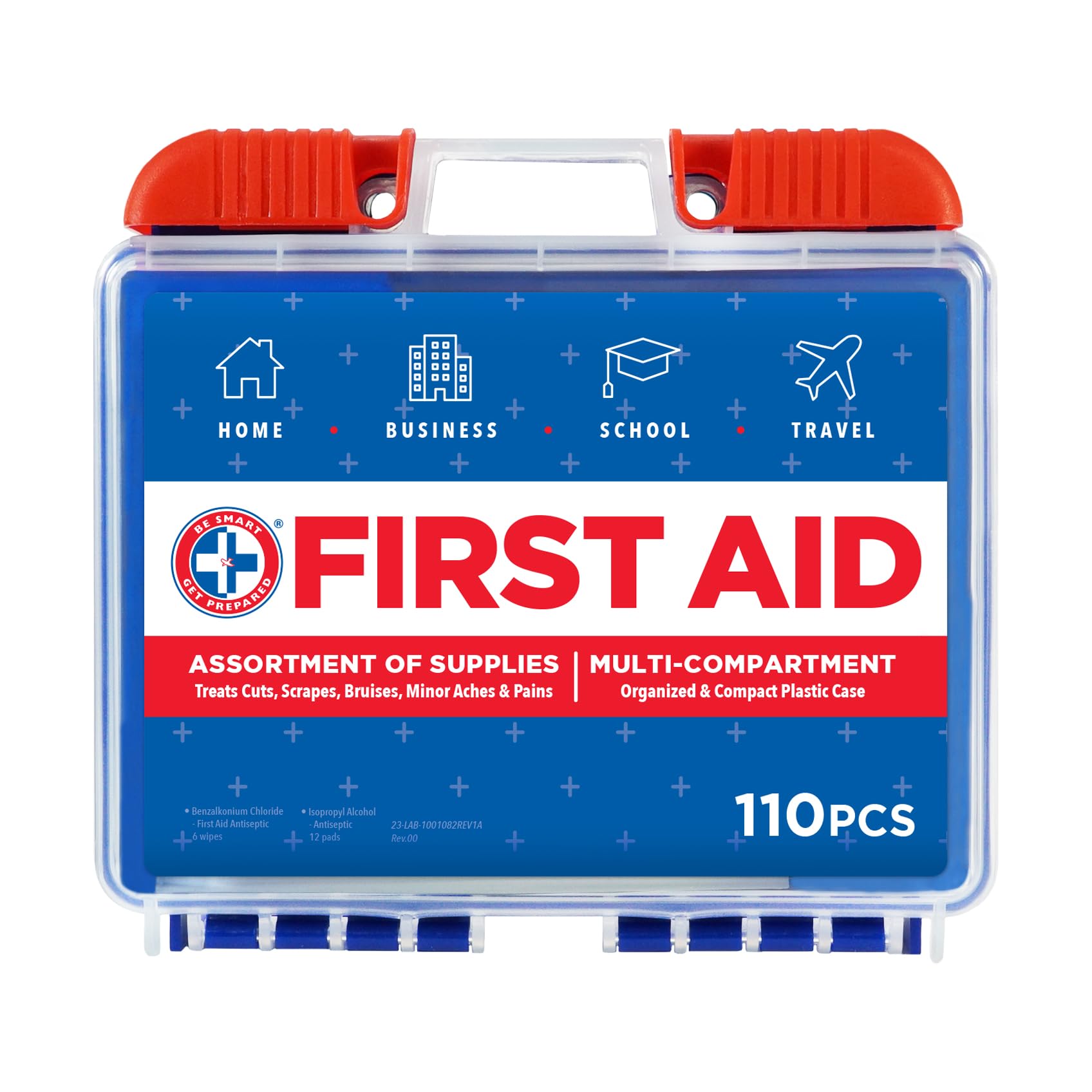 Be Smart Get Prepared 110 pc First Aid Kit: Clean, Treat, Protect Minor Cuts, Home, Office, Car, School, Business, Travel, Emergency, Outdoor, Camping & Sports, FSA/HSA (Packaging may vary)