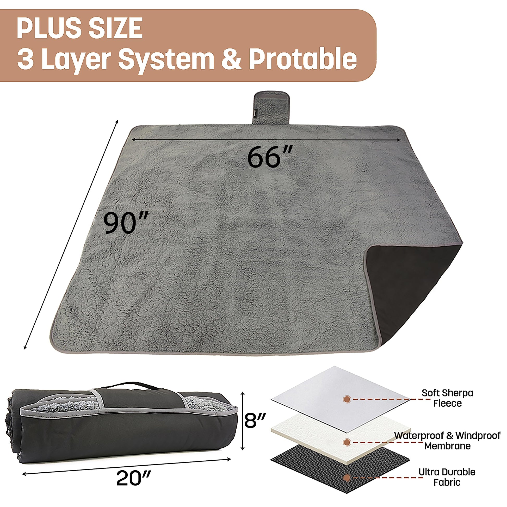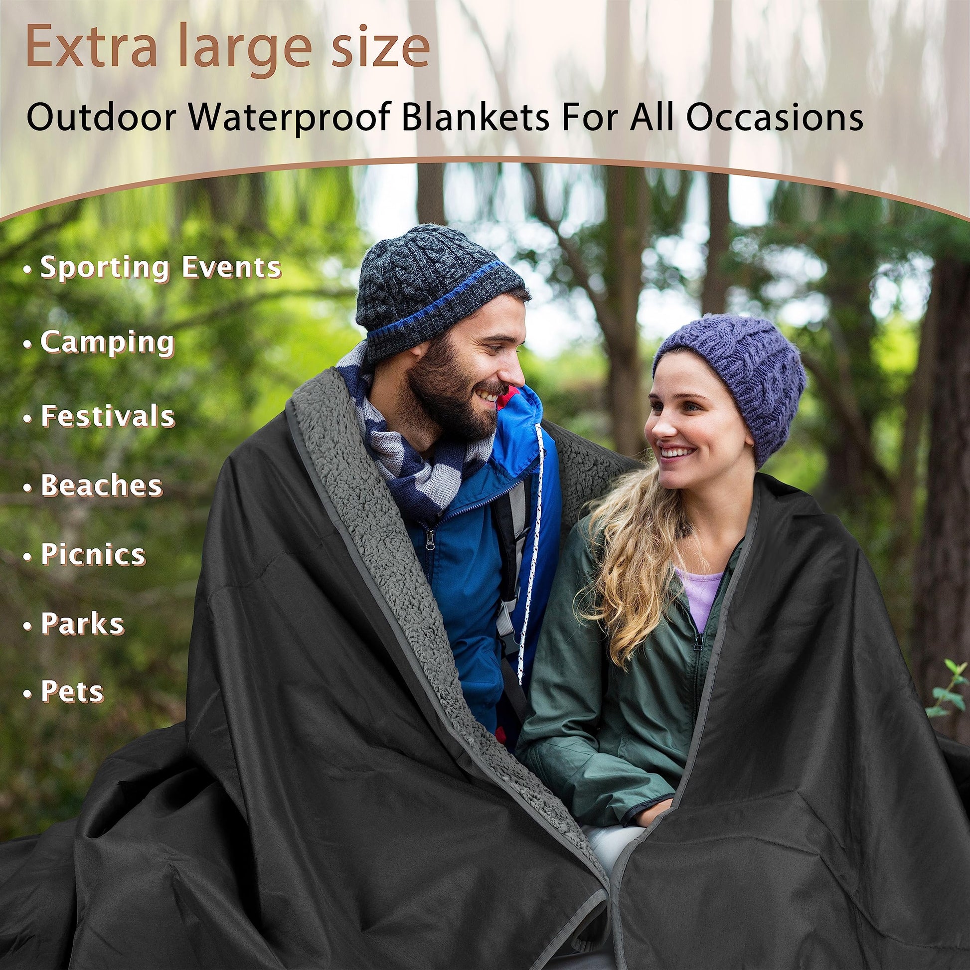 Tirrinia Waterproof Outdoor Blanket with Sherpa Lining, Windproof Triple Layers Warm Comfy Foldable for Camping Stadium, Sports, Picnic, Grass, Concerts, Pet, 51''X 59'' - Machine Washable